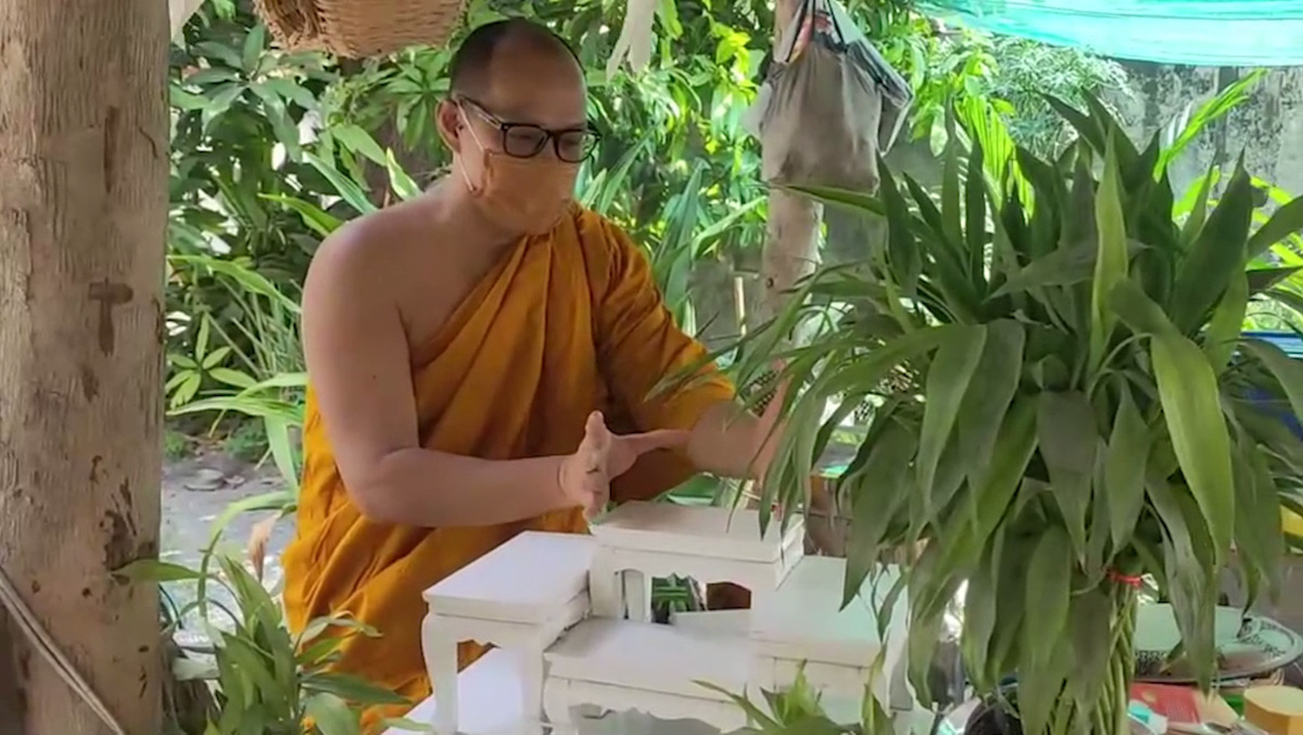 ต่อมาผู้สื่อข่าวลงพื้นที่ไปยังวัดถ้ำวิมานแก้ว ต.หน้าพระลาน อ.เฉลิมพระเกียรติ จ.สระบุรี ได้พบกับพระครูใบฎีกาพิพัฒน์ เจ้าอาวาสวัดถ้ำวิมานแก้ว เล่าให้ฟังว่า เมื่อวันเสาร์ (23 เม.ย.) เวลาประมาณ 16.00 น. ออกไปกิจนิมนต์ ภายในวัดไม่มีใครอยู่ มีแค่แม่ชีและลูกศิษย์ ก็มีผู้หญิง 2 คน ตามกล้องวงจรปิด จะมาขอเช่าวัตถุมงคล แต่แม่ชีบอกว่า พระอาจารย์ไม่อยู่ ไม่มีใครอยู่เลย เขาก็บอกว่า รอพระอาจารย์กลับจากกิจนิมนต์ได้ จากนั้นเขาก็เดินสำรวจรอบวัด