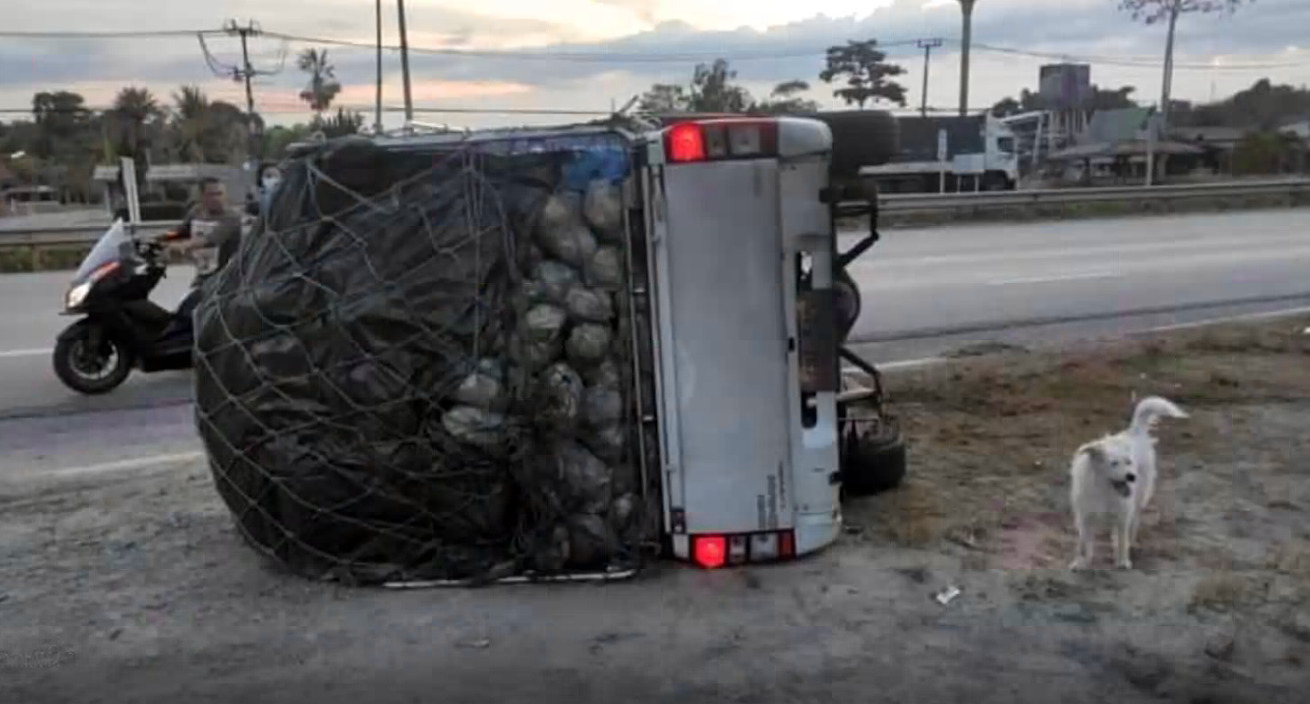 ตำรวจ สภ.ท่าชนะ จ.สุราษฎร์ธานี ไปตรวจสอบอุบัติเหตุรถพลิกคว่ำ บนถนนสาย 41 พบรถกระบะทะเบียน สงขลา ดัดแปลงเป็นรถรั้วบรรทุก ขนผักกะหล่ำปลีมาเต็มคันรถ สภาพพลิกตะแคง แต่ไม่พบผู้บาดเจ็บและไม่พบคนขับรถ