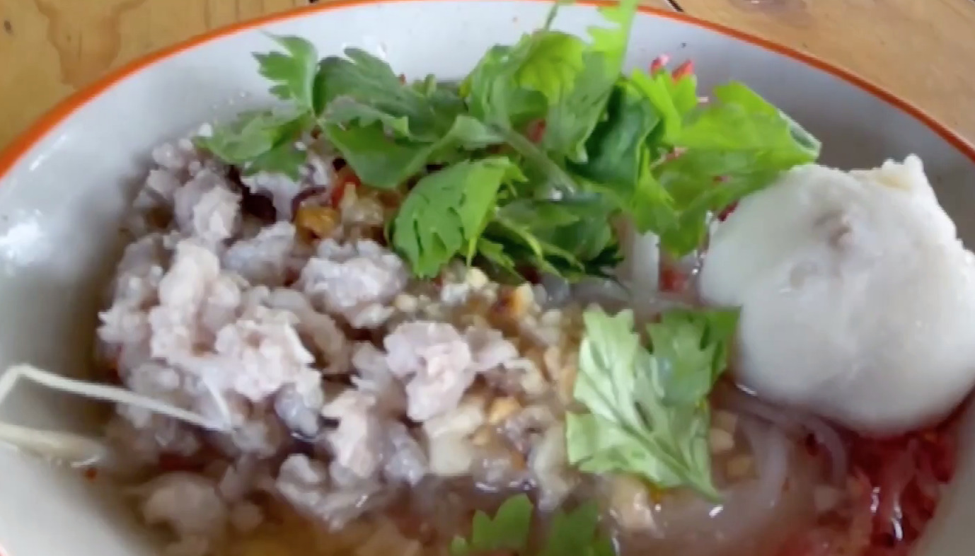 จุดเด่นของก๋วยเตี๋ยวหมูน้ำตกอยู่ที่หมูหมักที่ใช้หมูอย่างดี นำมาหมักให้หมูนุ่ม ส่วนน้ำก๋วยเตี๋ยวก็ไม่เหมือนที่อื่นโดยการปรุงรสน้ำซุปก่อนและเมื่อได้ที่แล้วจะใส่เลือดหมูลงไป ก่อนที่จะใส่กะทิเพื่อเพิ่มความหอมหวานและเพิ่มความเข้มข้นของน้ำซุป นอกจากนี้เครื่องปรุงทุกชนิดทำเองหมด และที่เป็นที่เด็ดก็คือกระเทียม เจียวที่เจียวกับกากหมูใหม่สดทุกวัน โดยที่ร้านจะเปิดขายทุกวันตั้งแต่เช้า ส่วนใหญ่ลูกค้าจะเยอะในช่วงเที่ยงและช่วงเย็นซึ่งแม้จะชายในราคา 9 บาทแต่ปริมาณที่ให้แค่ชามเดียวก็อิ่มแล้ว