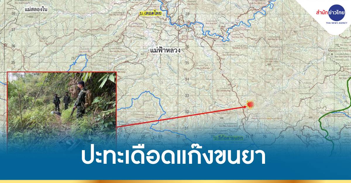 เชียงราย 30 เม.ย.-ทหารปะทะเดือด ขบวนการค้ายาเสพติดบริเวณชายแดนแม่ฟ้าหลวง จ.เชียงราย ฝ่ายตรงข้ามเสียชีวิต 8 ราย ยึดยาบ้าได้ 45 เป้ อยู่ระหว่างการตรวจพิสูจน์