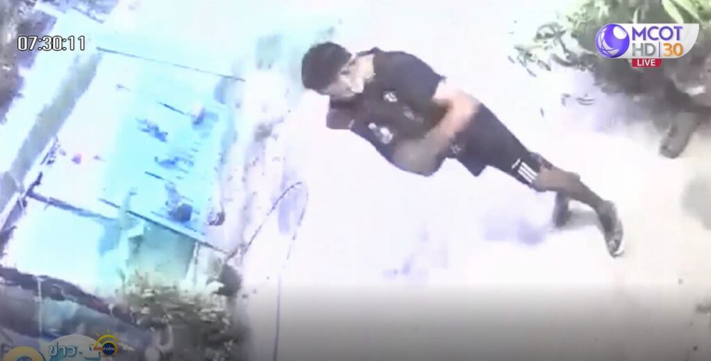 ภาพจากกล้องวงจรปิดหน้าห้องเช่าแห่งหนึ่ง พื้นที่บ้านโคกฟันโปง ต.บ้านเป็ด อ.เมือง จ.ขอนแก่น บันทึกเหตุการณ์ชายคนหนึ่งกำลังโวยวายอาละวาด โยนขวด โยนกระถางต้นไม้ใส่ประตูบ้านผู้เสียหาย พร้อมทั้งพูดขู่ฆ่าเจ้าของบ้านด้วย ผ่านไป 15 นาที ชายคนดังกล่าวก็ปั่นจักรยานหนีไป เหตุการณ์เกิดขึ้นเมื่อเวลา 18.00 น. ของวันที่ 28 เม.ย.ที่ผ่านมา