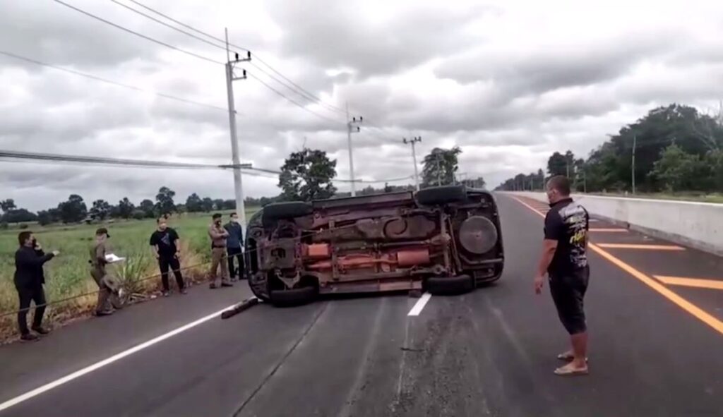 นครราชสีมา 2 พ.ค. – แก๊งค้ายาซิ่งฟอร์จูนเนอร์หนีตำรวจ ก่อนเสียหลักชนแบริเออร์พลิกคว่ำ ค้นรถพบยาบ้า 8 ล้านเม็ด ส่วนคนขับหลบหนีไปได้