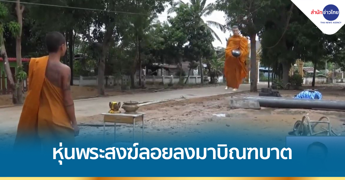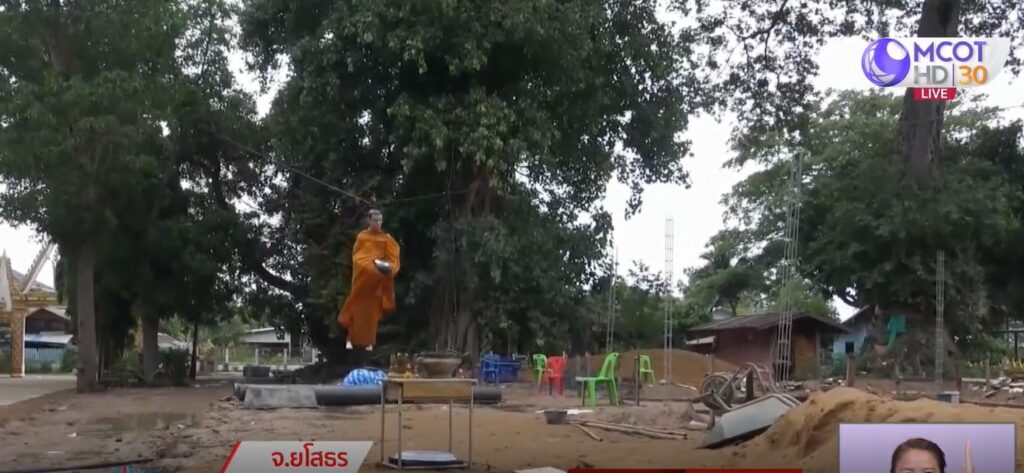 ยโสธร 4 พ.ค. – วัดท่าสะอาด ต.กุดน้ำใส อ.ค้อวัง จ.ยโสธร ทำหุ่นพระสงฆ์อุ้มบาตรลอยจากยอดไม้ลงมารับบิณฑบาตจากญาติโยม หวังเรียกศรัทธาให้ญาติโยมร่วมทำบุญ