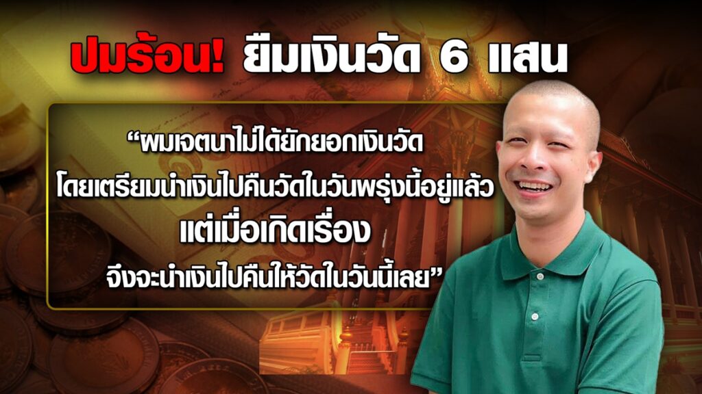 นครศรีธรรมราช 4 พ.ค. – “กาโตะ” ลั่นเงิน 6 แสนบาท ที่เป็นข่าวครึกโครม เป็นเงินของวัด ตนแค่ยืมมา ไม่ได้ยักยอก ล่าสุดนำเงินมาคืนวัดเรียบร้อยแล้ว โดยมีพระผู้ใหญ่เป็นสักขีพยาน ยืนยันบริสุทธิ์ใจ ไม่กลัวถูกแจ้งความ