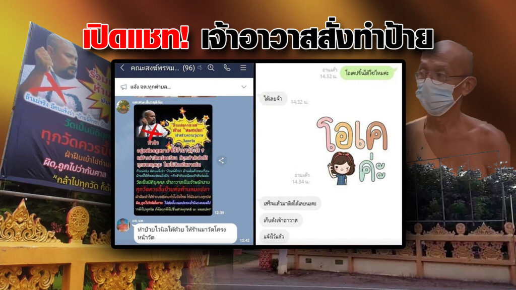 พิษณุโลก 4 พ.ค. – ปมป้ายไวนิลห้ามหมอปลาเข้าวัด ที่วัดใหม่พรหมพิราม จ.พิษณุโลก ที่ทางวัดบอกไม่รู้เรื่องว่าใครมาติดตั้ง กระทั่งมีแชทหลุดเรื่องการสั่งทำป้าย ล่าสุดเจ้าอาวาส ออกมายอมรับแล้วว่าเป็นผู้สั่งทำป้ายเอง