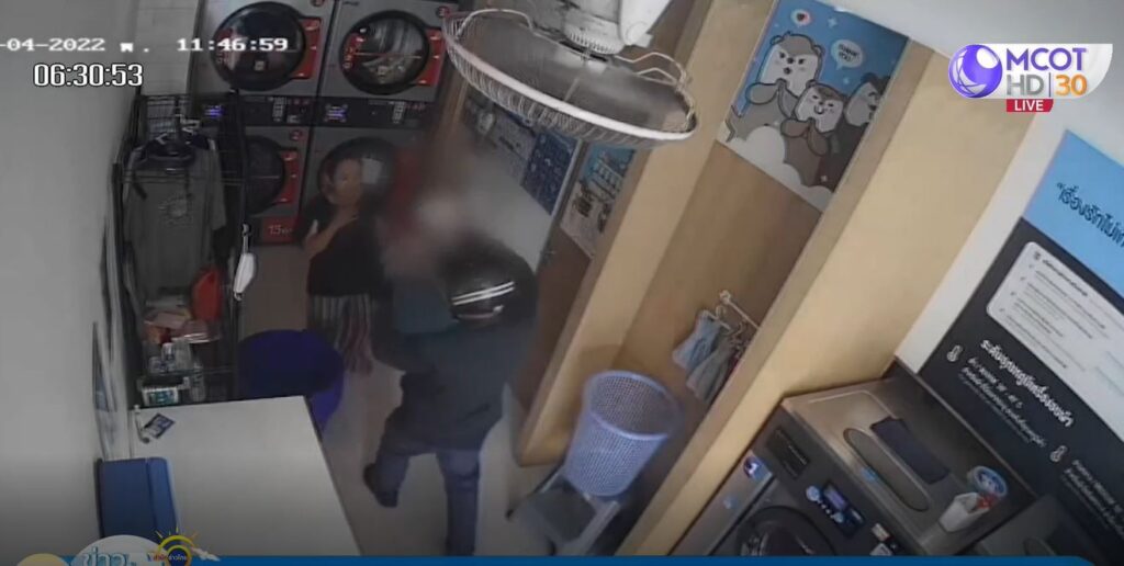 กล้องวงจรปิดจับภาพชายสวมหมวกกันน็อกปิดบังใบหน้า สวมเสื้อคลุมแขนยาวสีดำ กางเกงยีนส์ มือถือมีดปลายแหลม บุกเข้าไปในร้าน otteri wash&dry หมู่ 2 ตำบลเนินพระ อำเภอเมือง จังหวัดระยอง ก่อนเดินปรี่ไปหานางสำรอง อายุ 54 ปี คนดูแลร้านซักผ้าหยอดเหรียญ ซึ่งเวลานั้นอยู่ในร้านคนเดียว พร้อมชักมีดปลายแหลมจี้บังคับชิงเอาสร้อยคอทองคำน้ำหนัก 1 บาท ของนางสำรองที่สวมอยู่ที่คอ ก่อนวิ่งออกจากร้านไปขึ้นรถจักรยานยนต์หลบหนีไป