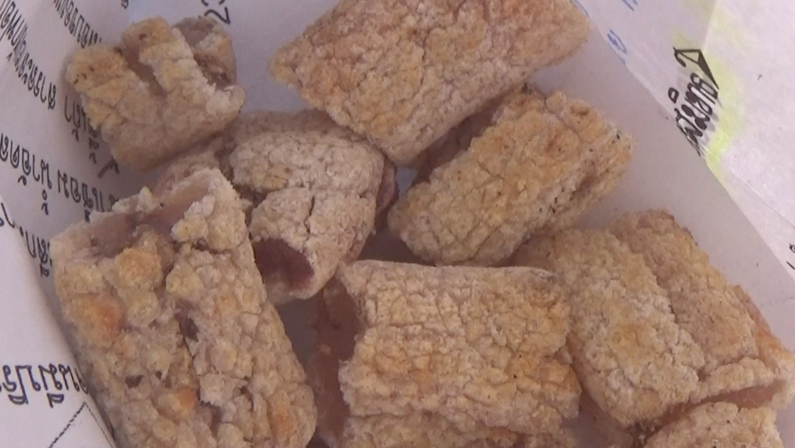 เชียงใหม่ 5 พ.ค.- มาดูเมนูคนฟันดี “สังข์ทองถอดรูป” ข้างนอกดำข้างในขาวหรือหนังควายจี่ ที่พ่อค้าจอดขายริมถนนที่เชียงใหม่ กรอบนอกนุ่มใน สร้างรายได้ดีวันละกว่า 3,000 บาท