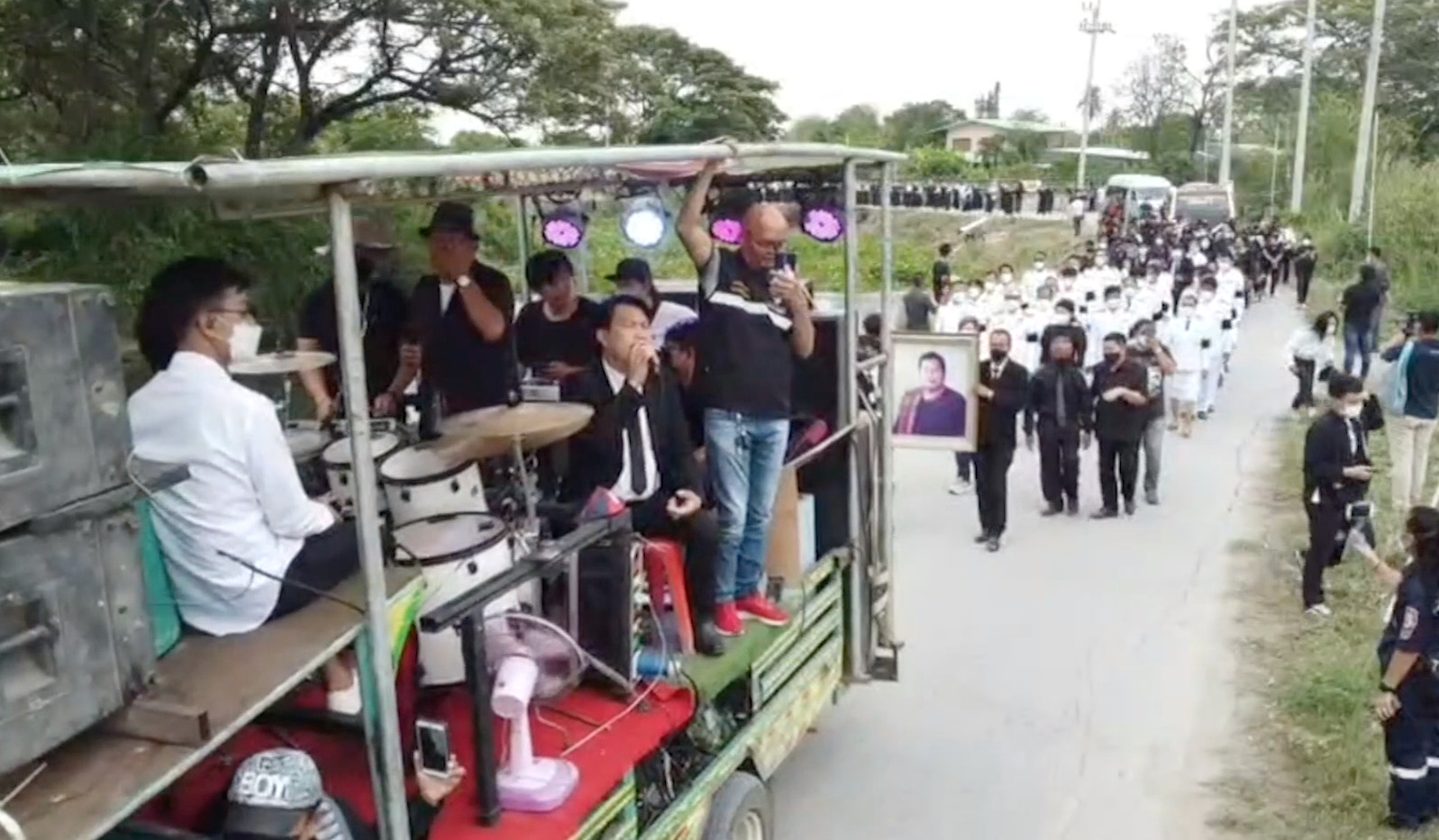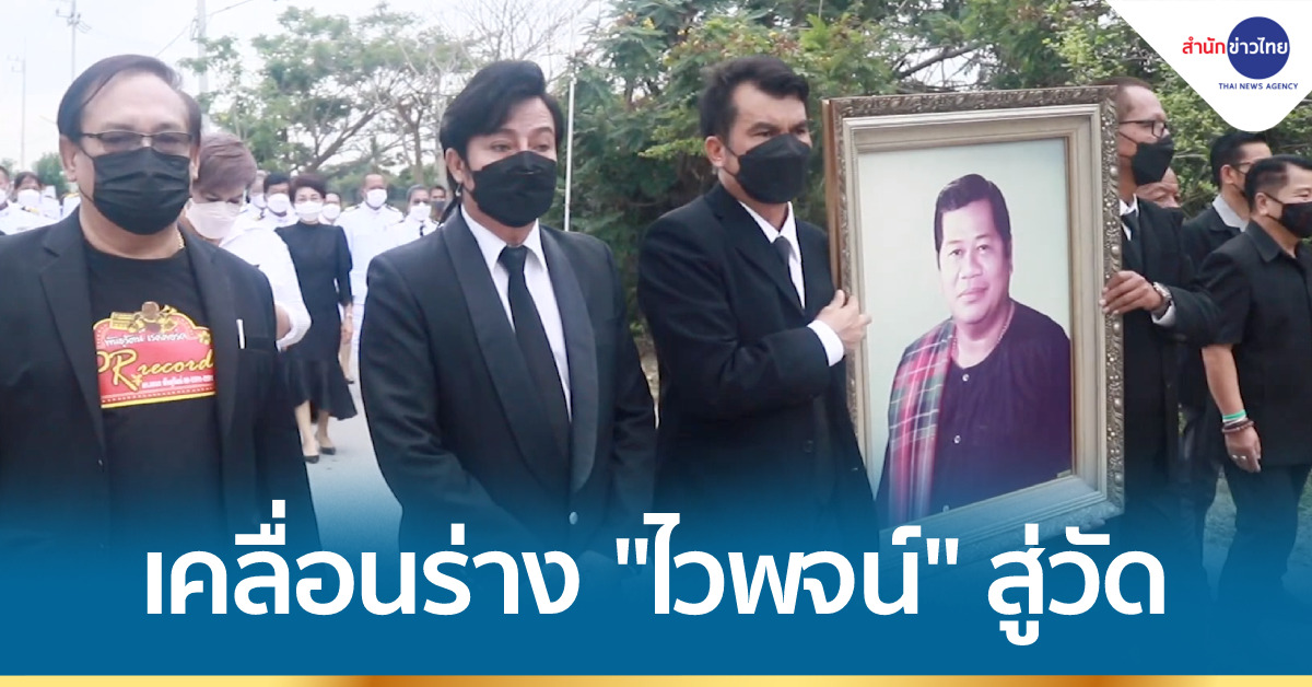 สุพรรณบุรี 5 พ.ค.- บรรดาแฟนเพลง ญาติ และครอบครัวของ “ไวพจน์ เพชรสุพรรณ” ศิลปินเพลงแห่งชาติ สาขาศิลปะการแสดง นักร้องเพลงลูกทุ่ง ร่วมกันเคลื่อนย้ายร่างจากบ้านคุ้มวังใต้ ต.วังน้ำเย็น อ.บางปลาม้า จ.สุพรรณบุรี มายังวัดวังน้ำเย็น เพื่อประกอบพิธีทางศาสนาในการสวดอภิธรรม และพิธีพระราชทานเพลิงศพในวันที่ 7 พ.ค.65