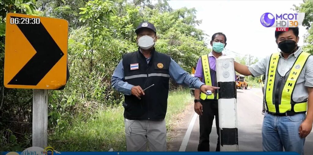ทั้งนี้ นายนรินทร์ เอี่ยมครอง รองผู้อำนวยการแขวงทางหลวงน่านที่ 1 ชี้แจงว่า แขวงทางหลวงน่านที่ 1 ได้รับงบประมาณในการจัดชื้อหลักนำทางยางพาราในปี 2564 โดยเป็นนโยบายเพื่อช่วยเหลือเกษตรกรชาวสวนยางพาราของรัฐบาล ให้นำมาติดตั้งแทนเสาคอนกรีตที่มีอยู่และเพิ่มเติมในส่วนที่ติดตั้งไม่ครบ เพื่อช่วยลดการสูญเสียจากการชน และใช้เป็นแนวนำทางในการขับรถ ไม่ได้ป้องกันรถชน เพราะถ้าชนไม่ว่าเป็นเสาคอนกรีตหรือเสายางพาราก็กั้นไม่อยู่ ในส่วนที่มีไม้ไผ่ในเสาเพื่อเป็นการช่วยติดตั้งให้ไวขึ้น เนื่องจากตอนได้เสามาใหม่ๆ เสามีความอ่อน ทำให้การติดตั้งเป็นไปได้ยาก จึงนำไม้ไผ่สอดไว้ข้างใน เพื่อเป็นหลักยึดในการติดตั้ง ส่วนไม้มีการสูญสลายภายในไม่กี่เดือน และแขวงทางหลวงน่านที่ 1 ได้ติดตั้งตามแบบมาตรฐานของกรมทางหลวง จึงเป็นสาเหตุทำให้ผู้ที่พบเห็นว่ามีไม้ไผ่สอดด้านในนั้นเหมือนการคอร์รัปชัน สอดไส้เสาหลักเพื่อลดต้นทุนนั้นไม่จริง