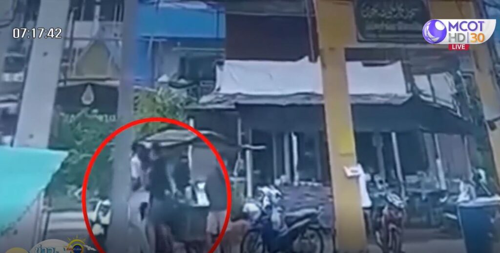 จากคลิปจะเห็นผู้ชายคนหนึ่งเดินตามหลังนางสาวณัทกาญจน์ อายุ 30 ปี จากนั้นเข้ามากระชากคอเสื้อจนนางสาวณัทกาญจน์ล้มลงกับพื้น ก่อนเข้าไปเตะและกระทืบซ้ำตามร่างกายหลายครั้งจนนางสาวณัทกาญจน์สลบคาที่ ท่ามกลางความตกตะลึงของพ่อค้าแม่ค้า และประชาชน ที่ยืนซื้อของอยู่บริเวณนั้นเป็นจำนวนมาก