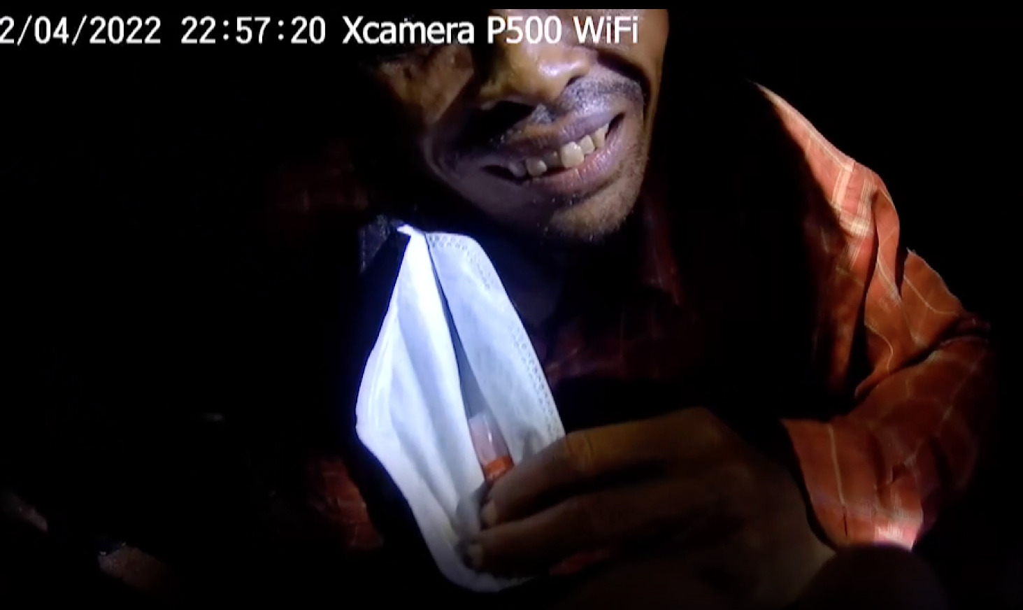 พบนายอุดมพร อายุ 43 ปี ชาว อ.อู่ทอง จ.สุพรรณบุรี เดินเข้ามาท่าทางมีพิรุธน่าสงสัย เจ้าหน้าที่จึงขอทำการตรวจค้นตัว นายอุดมพร บอกว่าไม่มีให้ค้นตัวตามสบาย เจ้าหน้าที่จึงทำการตรวจค้นตัวก็ยังไม่พบ แต่ท่าทางของนายอุดมพรก็ยังมีพิรุธอยู่ จึงขอให้ถอดแมสก์ออกจนพบยาบ้า 20 เม็ด ซ่อนอยู่ภายในแมสก์ เจ้าตัวถึงกับเสียงสั่นร้องไห้