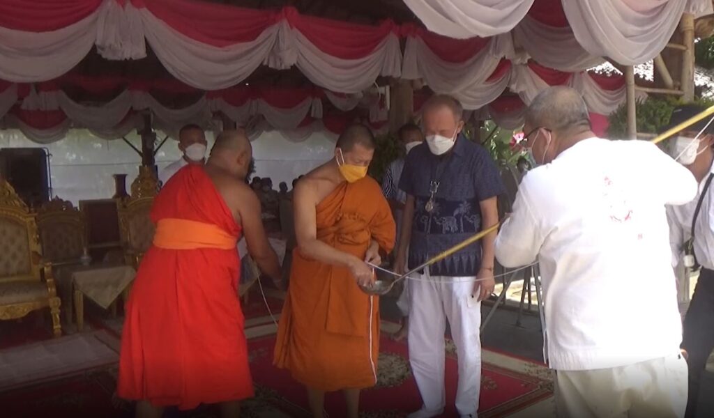 จากนั้นยังได้มีพิธีอัญเชิญยอดปลีฉัตรขึ้นไปประดิษฐานบนยอดพระธาตุเจดีย์ ความสูงกว่า 10 เมตร หลังจากเสร็จสิ้นพิธียกยอดฉัตรพระมหาธาตุเจดีย์ และเททองหล่อองค์หลวงพ่อสม พระราชพัฒนโสภณ หรือ หลวงพ่อเณร ได้บริจาคข้าวสาร จำนวน 200 ถุง และแจกวัตถุมงคลให้กับประชาชนที่มาร่วมพิธี .-สำนักข่าวไทย