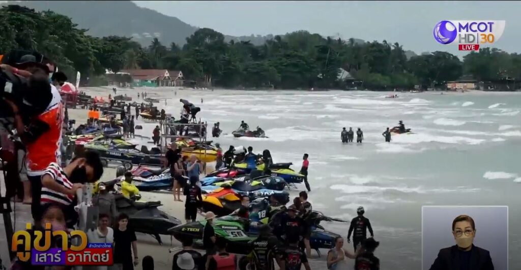 บริเวณชายหาดเฉวง อำเภอเกาะสมุย จังหวัดสุราษฎร์ธานี มีการแข่งขันเจ็ตสกีโปรทัวร์ 2022 สนามที่ 2 เพื่อเก็บคะแนนคัดนักกีฬาเจ็ตสกีไปแข่งขันเจ็ตสกีระดับโลก