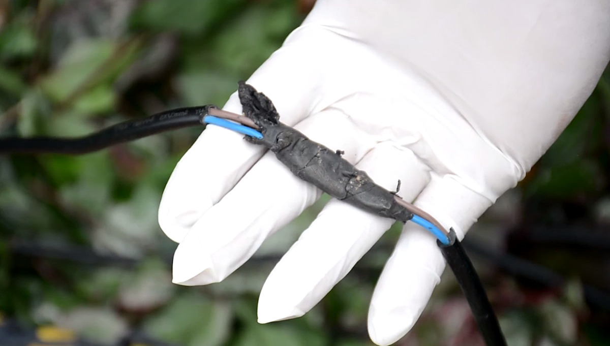 จันทบุรี 9 พ.ค. – อุทาหรณ์! เจ้าของสวนผลไม้ วัย 77 ปี ต่อสายไฟพ่วงเข้าเครื่องตัดแต่งกิ่งไม้ไฟฟ้าด้วยตัวเอง สายขาดชำรุดลวดทองแดงโผล่ ไม่ทันระวัง กระแสไฟ 220 โวลต์ ช็อตร่างเสียชีวิตข้างรั้ว