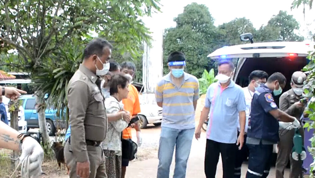 ด้านนายสุทธนา อายุ 42 ปี ผู้ใหญ่บ้านที่มาพบศพ ให้การว่า ก่อนเกิดเหตุมีคนงานสวนผลไม้ขับรถผ่านมาพบเห็นนายธงชัย กำลังใช้เครื่องตัดแนวรั้วต้นไม้ นอนชักอยู่ริมถนน จึงรีบโทรไปแจ้งนายจ้าง และได้ให้โทรกลับมาบอกตน เนื่องจากตอนนั้นทำงานอยู่ในสวน