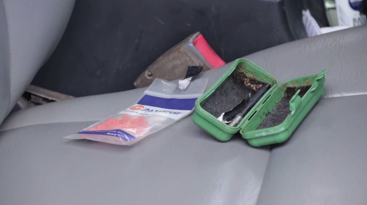 หลังเจ้าหน้าที่ตำรวจเข้าระงับเหตุ ได้ขอตรวจค้นภายในรถของนายสาธิต พบอาวุธปืนพกสั้น ชนิดออโตเมติก ขนาด 9 มม. จำนวน 1 กระบอก พร้อมเครื่องกระสุน ขนาด 9 มม. จำนวน 9 นัด บรรจุอยู่ในแมกกาซีน จึงยึดไว้ตรวจสอบ นอกจากนี้ยังพบยาบ้า จำนวน 90 เม็ด บรรจุอยู่ในถุงพลาสติกใส จำนวน 2 ถุง ซุกอยู่ในกล่องไฟฉาย