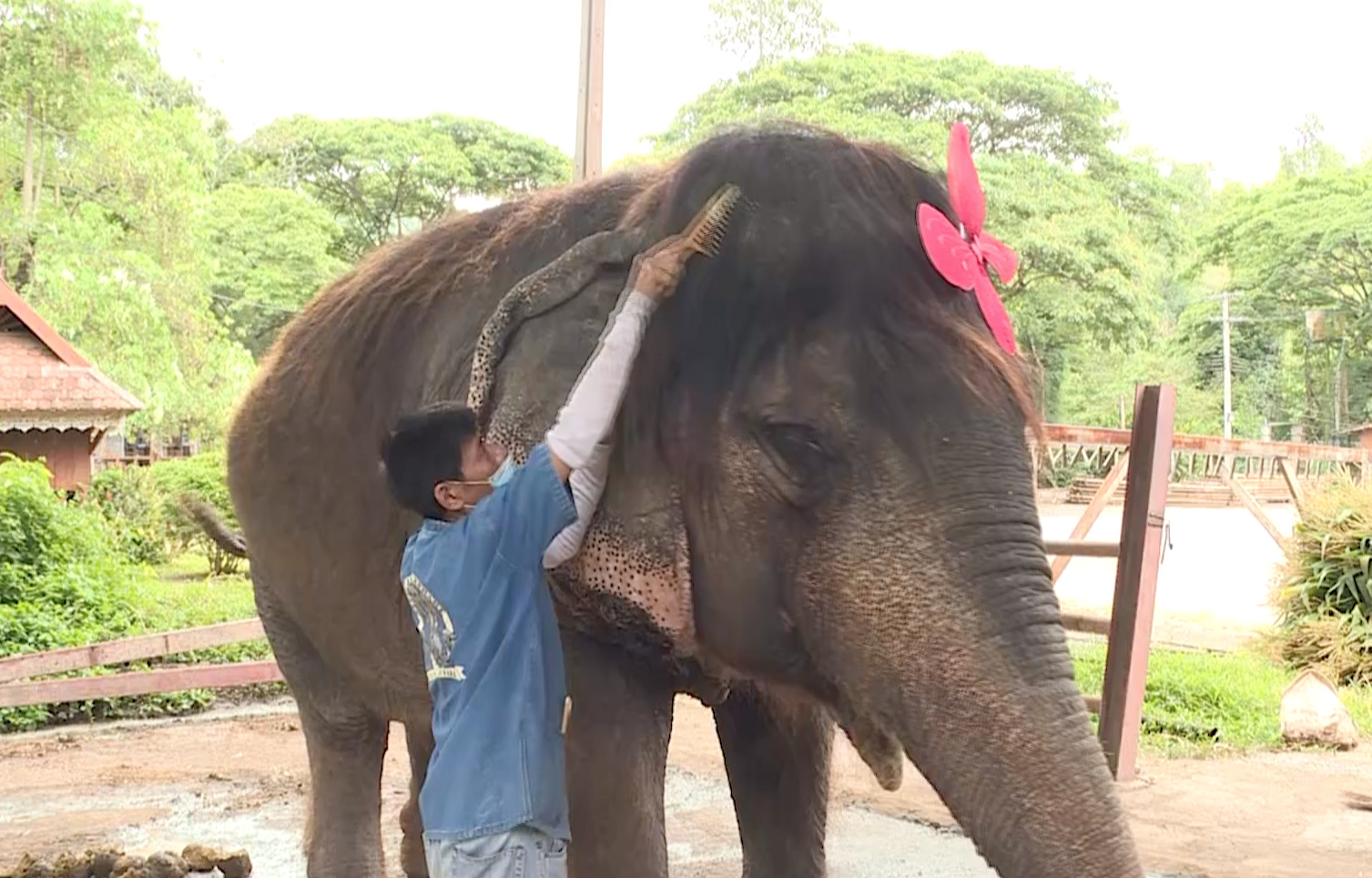 เชียงใหม่ 11 พ.ค.- สุดน่ารัก! ช้างพังยายบุญมา หรือ ช้างคุณยายหน้าม้า วัย 73 ปี ฉายาแมมมอธเมืองไทย ที่มีขนยาวขึ้นทั่วตัวถึง 1 ฟุต คล้ายช้างห่มผ้า ควาญช้างต้องคอยหวีขน ติดโบว์ให้น่ารัก