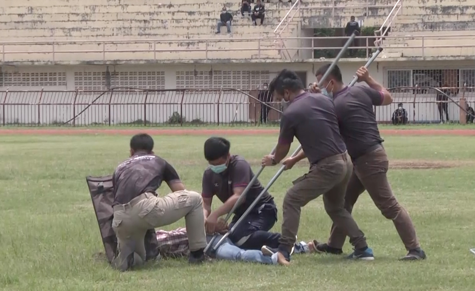 กาฬสินธุ์ 12 พ.ค.- ที่สนามกีฬากลาง จ.กาฬสินธุ์ นายทรงพล ใจกริ่ม ผู้ว่าฯ กาฬสินธุ์ เป็นประธานเปิดการฝึกอบรมยุทธวิธีการใช้อุปกรณ์ไม้ง่าม กรณีผู้มีอาการทางจิตก่อเหตุ โครงการนาคาพิทักษ์รักษ์ประชา ตำรวจภูธร จ.กาฬสินธุ์