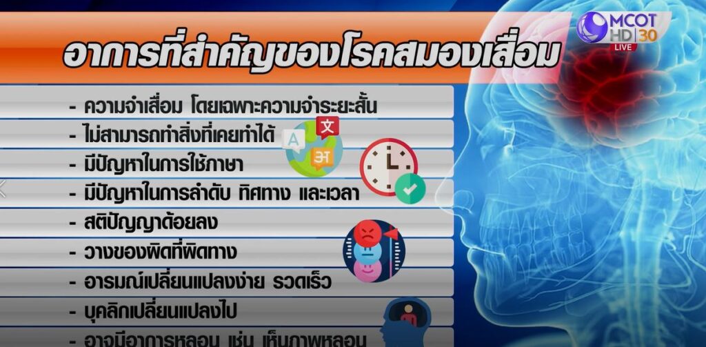 โรคอัลไซเมอร์ เป็นสาเหตุหนึ่งของภาวะสมองเสื่อม และเป็นสาเหตุที่พบได้บ่อยที่สุด ความชุกของโรคจะเพิ่มขึ้นตามช่วงอายุ พบความชุกร้อยละ 10-15 ในประชากรที่อายุมากกว่า 65 ปี และพบร้อยละ 20-30 ในประชากรที่อายุมากว่า 80 ปี สาเหตุเกิดจากการเปลี่ยนแปลงหลายอย่างในสมองจนบางส่วนของสมองทำหน้าที่ลดลง เกิดการฝ่อ ทำให้กระทบกับการทำงานของสมองส่วนนั้น และแสดงอาการต่าง ๆ ออกมา เช่น หลงลืม ถามซ้ำ ๆ ฯลฯ อย่างไรก็ตาม ยังไม่ทราบสาเหตุแน่ชัดของโรคอัลไซเมอร์ อาการของโรค ผู้ป่วยจะมีปัญหาด้านความจำเป็นอาการหลัก ผู้ป่วยจะไม่สามารถจดจำ และเรียนรู้สิ่งใหม่ ๆ ได้ จึงมักจะลืมว่าวางของไว้ที่ไหนทั้งที่พยายามจำ ถามซ้ำ ๆ พูดซ้ำ ๆ เป็นต้น