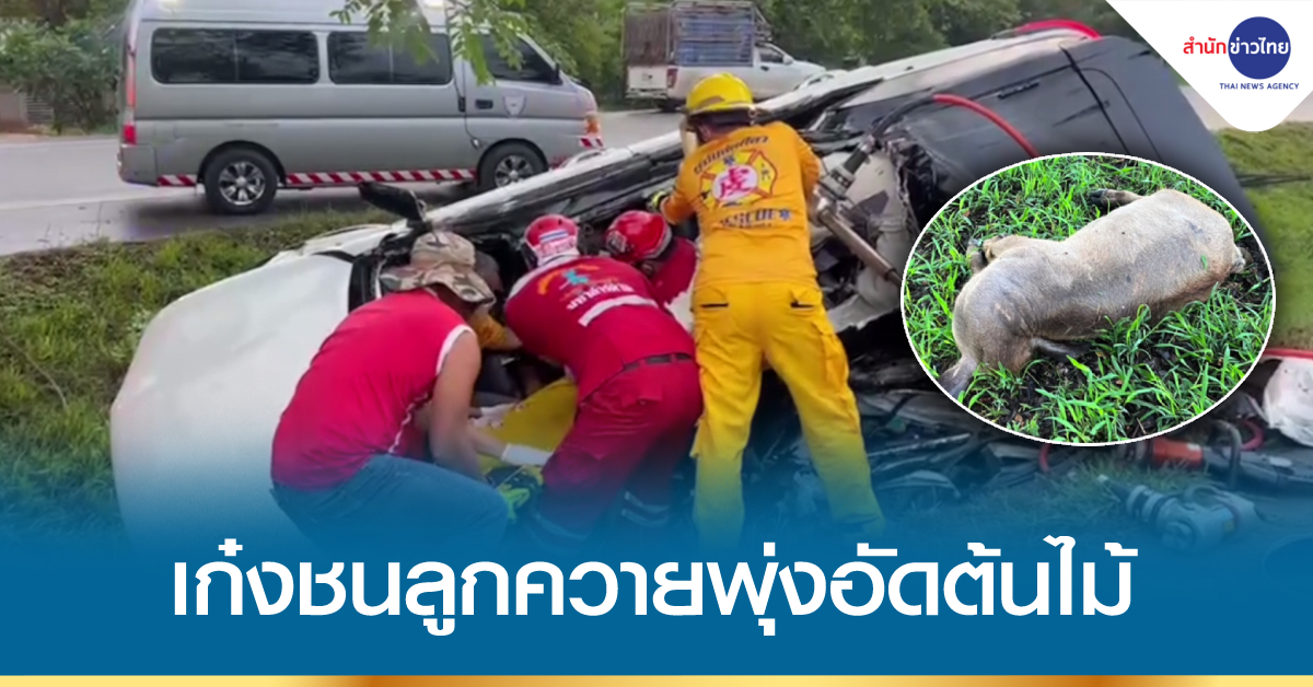 มหาสารคาม 13 พ.ค. – 3 พ่อแม่ลูกขับรถจะกลับบ้านที่ จ.กาฬสินธุ์ เจอลูกควายวิ่งตัดหน้าชนเข้าอย่างจัง รถเสียหลักพุ่งชนต้นไม้ในร่องกลางถนน ทำให้แม่เสียชีวิต ส่วนพ่อและลูกสาวบาดเจ็บสาหัส