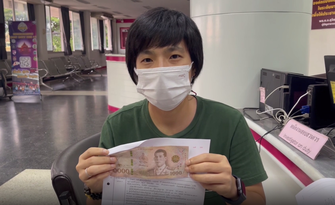 ผู้สื่อข่าวรายงานว่าได้รับแจ้งมีผู้พบธนบัตร 1,000 บาท ปลอมเดินทางมาแจ้งความที่ สภ.เมืองหนองบัวลำภู รายแรก คือ ว่าที่ ร.ต.วราวุฒิฯ นำธนบัตรหมายเลข 5 B 2052935 จำนวน 1 ฉบับ เข้าแจ้งความกับว่าที่ ร.ต.ท.หญิง วิลาสินี อาษานาม ตำแหน่ง รอง สว. (สอบสวน) สภ.เมืองหนองบัวลำภู ว่าตนเองเป็นผู้จัดการปั๊มน้ำมันแห่งหนึ่งในอำเภอโนนสัง โดยมีลูกค้าไม่ทราบว่าเป็นใครนำมาจ่ายค่าน้ำมันที่ปั๊ม หลังจากนั้นได้รวบรวมเงินที่ขายได้วันนี้ เพื่อจะนำมาฝากเข้าบัญชีที่ธนาคารกรุงไทย สาขาโลตัสหนองบัวลำภู และทางเจ้าหน้าที่ธนาคารฯ ปฏิเสธการรับฝากธนบัตร โดยแจ้งว่าเป็นธนบัตรปลอม และปั๊มยกเลิกใส่ในธนบัตรไว้ ทางผู้แจ้งได้รับธนบัตรดังกล่าวจากพนักงานปั๊มที่รับเงินจากลูกค้าที่มาใช้บริการเติมน้ำมัน ไม่ทราบว่าเป็นใคร เพราะมีลูกค้ามาใช้บริการเติมน้ำมันจำนวนมาก เบื้องต้นจึงนำธนบัตรมามอบให้กับเจ้าหน้าที่ตำรวจลงบันทึกประจำวันไว้เป็นหลักฐาน