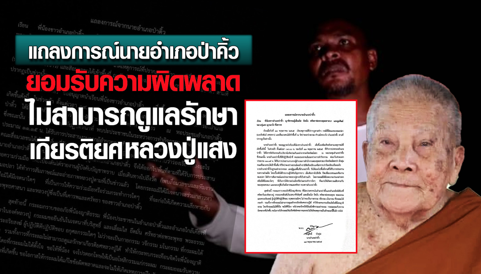 นอกจากนี้ ยังมีความเคลื่อนไหวจากนายอำเภอป่าติ้ว นอกจากเข้าขอขมา ‘หลวงปู่แสง’ ยังออกแถลงการณ์ขอโทษพี่น้องญาติธรรม ที่ไม่ดูแลรักษาเกียรติยศหลวงปู่ โดยระบุว่าวันเกิดเหตุเมื่อ 11 พ.ค.65 ที่ ช่วงเวลาประมาณ 11.15 น. ได้รับการประสานงานจากผู้อำนวยการสำนักงานพระพุทธศาสนาจังหวัดยโสธรว่า มีกลุ่มคณะสื่อมวลชนได้เข้าพื้นที่มาที่วัดป่าดงสว่างธรรม โดยอ้างว่ามีข้อร้องเรียนแต่ไม่ทราบว่าร้องเรียนเรื่องอะไร นายอำเภอป่าติ้วในฐานะฝ่ายปกครอง และผู้ดูแลพื้นที่อำเภอป่าติ้ว จึงออกไปพื้นที่ตามที่ได้รับการประสานขอความร่วมมือ และรายงานผู้บังคับบัญชาทราบ เมื่อเดินทางไปถึงวัด ก็พบสื่อมวลชนและทีมงานหมอปลา ทำการสัมภาษณ์และถ่ายภาพหลวงปู่ตามที่เป็นข่าวแล้ว โดยกระผมมิได้มีเจตนาจะร่วมกล่าวหาที่จะก่อให้เกิดความเสียหาย และหลวงปู่ซึ่งเป็นที่เคารพและศรัทธา ของชาวอำเภอป่าติ้ว จึงกราบขออภัยพี่น้องญาติธรรม ที่ตนไม่สามารถดูแลรักษาเกียรติยศหลวงปู่ได้ ทำให้กระทบกระเทือนจิตใจพี่น้องญาติธรรม จงโปรดยกโทษและอโหสิกรรม และจะไม่ให้เกิดเหตุการณ์ในลักษณะนี้ขึ้นอีกต่อไป.-สำนักข่าวไทย
