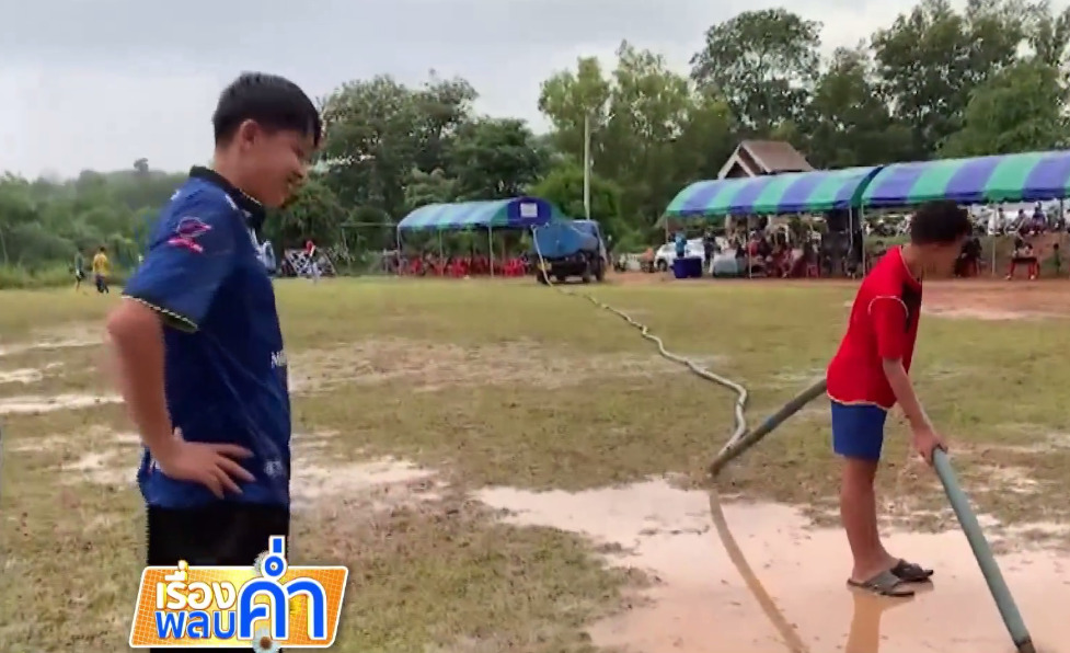เลย 16 พ.ค. – ฮาขมคอ การแข่งขันฟุตบอล 7 คน เสี้ยวคัพ การกุศล ที่ จ.เลย มีฝนตกลงมาจนเกิดน้ำท่วมสนามบอล คนจัดงานไม่รอช้า แก้ปัญหาเร่งด่วน เรียกใช้บริการรถดูดส้วมมาสูบน้ำออก จนแข่งต่อได้ ไม่เปลืองแรงคน