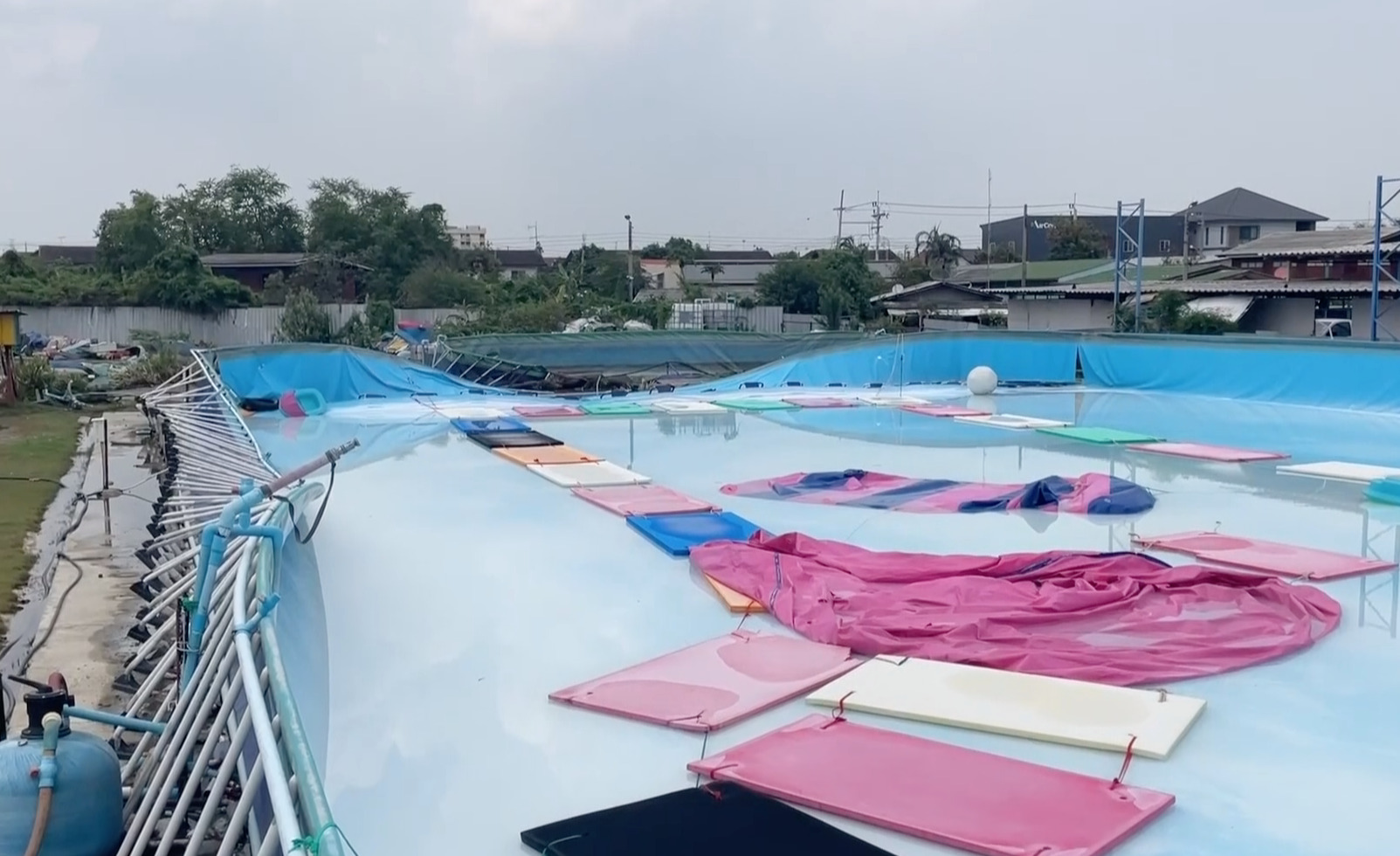 เมื่อช่วงบ่ายที่ผ่านมา นายณัฐพงษ์ อายุ 47 เจ้าของสวนน้ำ พาผู้สื่อข่าวไปดูสภาพความเสียหายของสระ และพื้นที่โดยรอบสวนน้ำ พบว่าสระน้ำซึ่งทำด้วยผ้าใบมีรอยฉีกขาดขนาดใหญ่ น้ำในสระประมาณ 1,875,000 ลิตร ไหลทะลักออกไปจากบ่อไหล เข้าไปบ้านประชาชนละแวกดังกล่าว ก่อนน้ำจะไหลลงคลองด้านหลังสวนน้ำ ทั้งเล่าว่าเหตุการณ์เกิดขึ้นเมื่อวันที่ 15 พ.ค. เวลา 18.40 น. ซึ่งขณะเกิดเหตุยังมีลูกค้าเล่นน้ำอยู่ โชคดีไม่มีใครได้รับบาดเจ็บ ส่วนชาวบ้านที่อยู่ด้านหลังสวนน้ำก็แจ้งมาว่าน้ำท่วม โดยชาวบ้านนึกว่าทางสวนน้ำปล่อยน้ำ เนื่องจากทางสวนน้ำจะปิดกิจการ