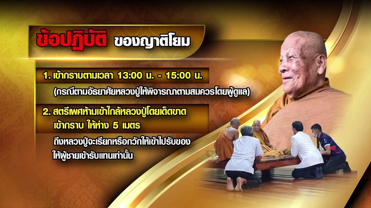 และตลอดช่วงบ่าย มีประชาชนจำนวนมากเดินทางมารอเข้ากราบหลวงปู่แสง โดยนายเฉลิมชัย จันทะโคตร โฆษกคณะกรรมการลูกศิษย์หลวงปู่แสง ได้ย้ำข้อปฏิบัติในการเข้ากราบหลวงปู่ 1. เข้ากราบตามเวลา 13.00-15.00 น. (กรณีตามอัธยาศัยหลวงปู่ให้พิจารณาตามสมควรโดยผู้ดูแล) 2. สตรีเพศห้ามเข้าใกล้หลวงปู่โดยเด็ดขาด เข้ากราบให้ห่าง 5 เมตร การรับของให้ผู้ชายเข้ารับแทนเท่านั้น 3. การบันทึกภาพให้บันทึกภาพระยะห่าง 5 เมตร 4. พึงเข้ากราบด้วยความเคารพสำรวม และ 5. หากฝ่าฝืนทางคณะศิษย์จะดำเนินคดีตามกฎหมาย