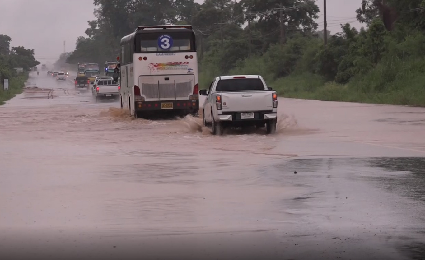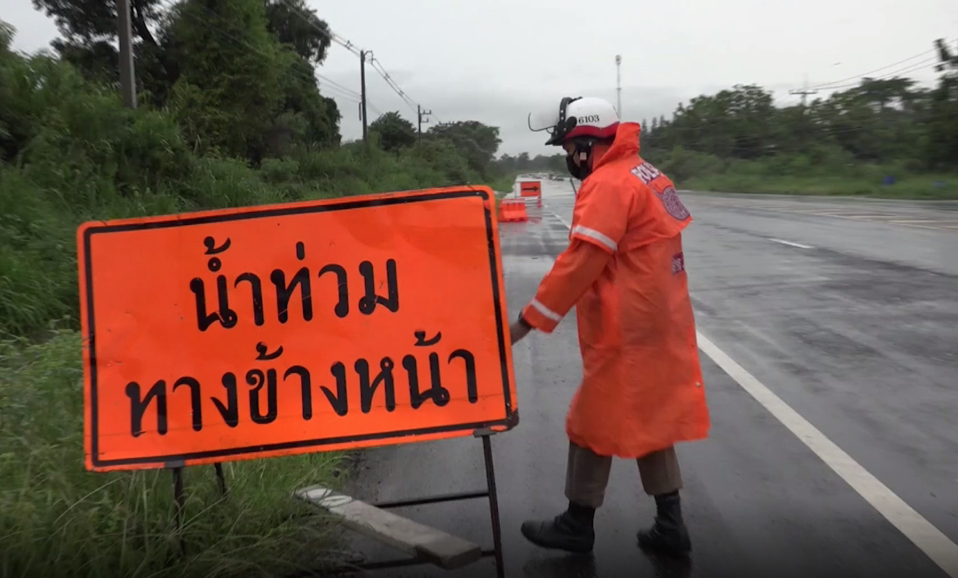 พื้นที่จังหวัดนครราชสีมา เกิดฝนตกหนักตั้งแต่เช้ามืด น้ำป่าไหลหลากจากพื้นที่สูงเข้าท่วมถนนทางหลวงสาย หนองสรวง-ขามทะเลสอ ช่วงหลักกิโลที่ 11 -12 ต.บึงอ้อ อ.ขามทะเลสอ มีน้ำป่าสภาพขุ่นแดงหลากท่วมถนน 4 ช่องทาง จราจรระยะทางเกือบ 1 กิโลเมตร ระดับน้ำสูง 50 เซนติเมตร รถเล็กสัญจรผ่านยากลำบาก วิ่งได้เฉพาะช่องกลางได้เพียงฝั่งละ 1 ช่องทางจราจรเท่านั้น ส่วนไหล่ทาง มีน้ำท่วมสูง กระแสน้ำไหลเชี่ยว รถจักรยานยนต์ต้องหยุดชะลอ ไม่สามารถวิ่งผ่านได้