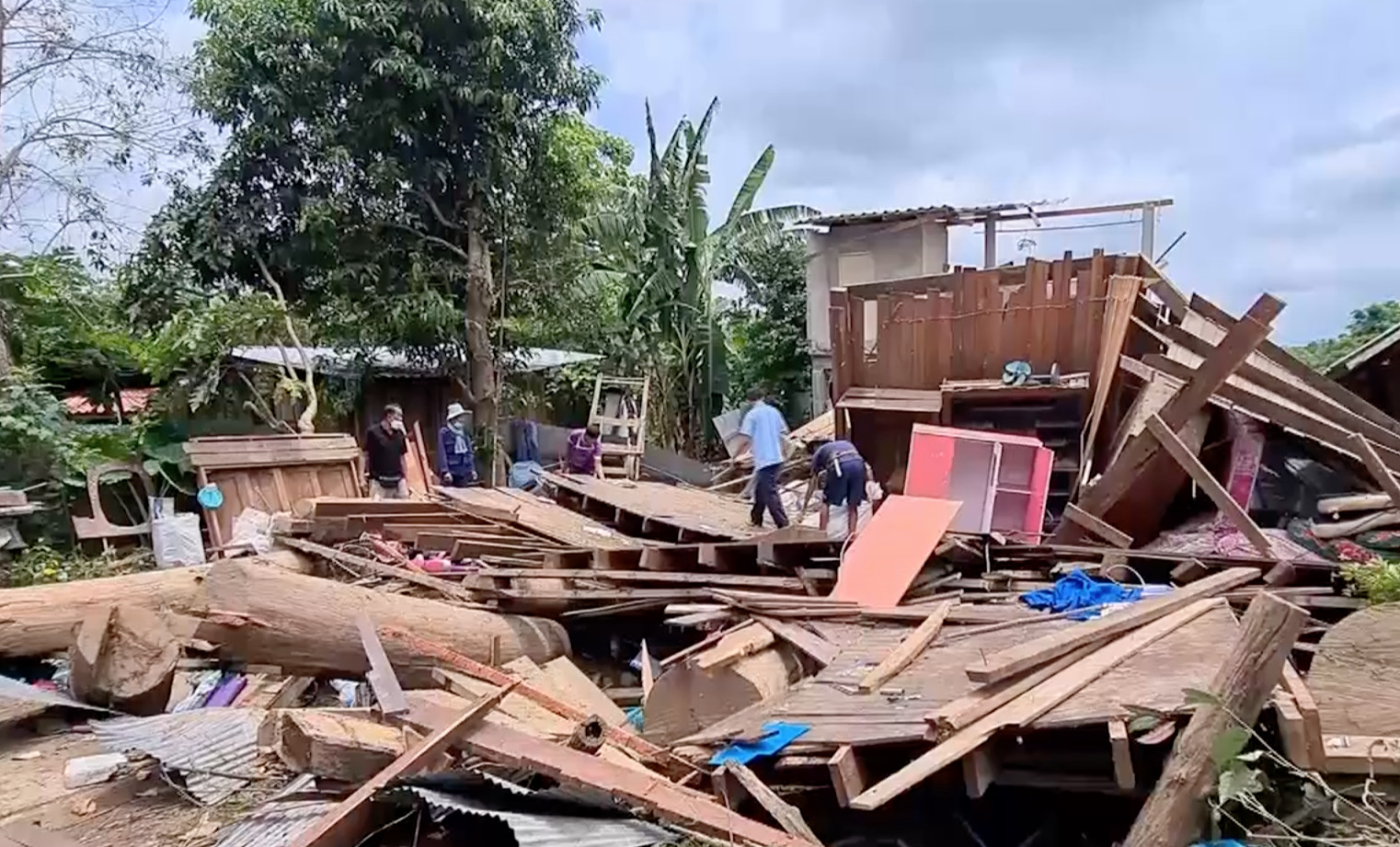 วันนี้หน่วยงานต่างๆ เข้าช่วยเหลือชาวบ้าน รื้อบ้านที่เสียหายออก รอสร้างใหม่ และช่วยซ่อมหลังคาบ้าน ฉีดล้างทำความสะอาด