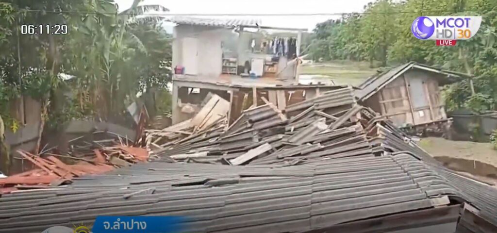 จากกรณีฝนตกลงมาอย่างหนักและเกิดน้ำป่าไหลทะลักเข้าท่วมบ้านเรือนชาวบ้านใน ต.แม่ตีบ อ.งาว จ.ลำปาง อย่างหนัก เมื่อช่วงเช้าวันที่ 17 พ.ค.ที่ผ่านมา ทำให้บ้านเรือนชาวบ้านได้รับความเสียหายกว่า 200 หลังคาเรือน โดยเฉพาะ 2 หมู่บ้าน คือ บ้านน้ำหลง ม.3 และบ้านงิ้วงาม ม.4 น้ำป่าไหลหลากเข้าท่วมบ้านเรือนชาวบ้านจนมีบ้านพังถล่มลงทั้งหลัง เนื่องจากกระแสน้ำป่าที่ไหลแรงและมีจำนวนมาก ทำให้น้ำเซาะใต้ดิน เสาบ้านล้มและบ้านพังถล่มลงมาต่อหน้าต่อตาเจ้าของบ้าน ซึ่งเจ้าของบ้านได้แต่นั่งกอดกับลูกสาวร้องไห้ เมื่อเห็นบ้านของตัวเองค่อยๆ พังถล่มลงมาทั้งหลัง ขณะเดียวกันบ้านที่อยู่ในบริเวณเดียวกันน้ำก็กัดเซาะเป็นพื้นที่กว้าง ทำให้ยุ้งฉางเก็บข้าวของชาวบ้านพังเสียหาย