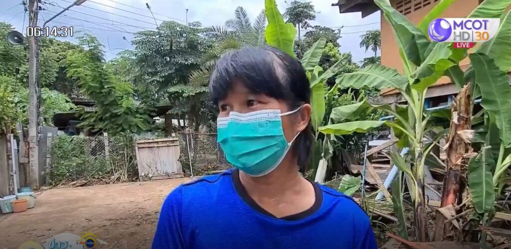 ผู้สื่อข่าวได้พูดคุยกับนางสมทัด อายุ 52 ปี เจ้าของบ้านที่บ้านพังถล่ม เล่าว่า คืนก่อนเกิดเหตุตนเองและลูกนอนที่บ้านตามปกติ เวลาประมาณตี 3-4 รู้ว่ามีน้ำป่าหลากเข้าหมู่บ้าน แต่ไม่คิดว่าจะแรง และคิดว่าเป็นปกติเหมือนที่เคยประสบมา กระทั่งช่วงสายเห็นว่ายุ้งข้าวที่อยู่หลังบ้านเริ่มเอียง กระทั่งเวลาประมาณ 9-10 โมงเช้า รู้สึกว่าบ้านเริ่มลั่น ตนเองจึงรีบเข้าไปหยิบเอกสารส่วนตัว โฉนดที่ดิน และรีบออกจากบ้านไปอยู่ที่บ้านญาติฝั่งตรงข้าม จากนั้นไม่นานบ้านก็เริ่มทรุดทีละข้างและเอียง สุดท้ายก็ถล่มตามที่ลูกสาวถ่ายคลิปได้ ตนเองกับลูกได้แต่กอดกันร้องไห้มองบ้านที่พังลงมา เสียดายบ้านที่สร้างมาด้วยน้ำพักน้ำแรง สร้างมาตั้งแต่ลูกอายุ 2 ขวบ ร่วมกว่า 30 ปีแล้ว