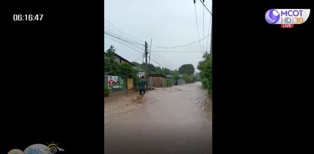 ที่เชียงใหม่ ฝนที่ตกหนักตลอดทั้งคืนวันที่ 17 พ.ค. จนถึงเช้าวันที่ 18 พ.ค. ในพื้นที่ อ.เชียงดาว ทำให้น้ำป่าไหลหลากลงลำห้วยแม่อ้อ ต.เมืองนะ กระแสน้ำไหลมาอย่างรวดเร็ว นำเศษไม้ ตอไม้ไหลมาด้วย ทำให้อุดตันท่อระบายน้ำ จนทำให้น้ำล้นเข้าท่วมบ้านเรือนประชาชนริมน้ำ ชาวบ้านตั้งตัวไม่ทัน ต้องขนของหนีน้ำอลหม่าน