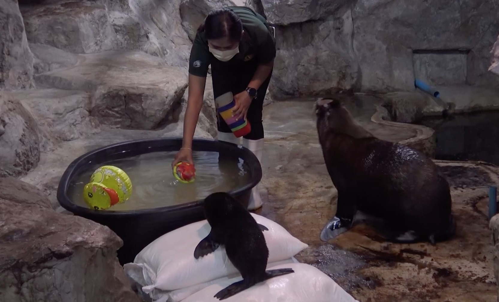 คุณสุชาดา ศรีขวัญ พี่เลี้ยงแมวน้ำ กล่าวว่า การฝึกลูกแมวน้ำไม่ยาก แต่ต้องอาศัยความคุ้นเคย ต้องเข้าหาเขาก่อน ต้องใช้เวลาอยู่กับเขาหลายวันและหลายรอบ เพื่อที่จะให้เขาคุ้นเคยกับพี่เลี้ยง คาดว่าอีกประมาณ 1 เดือนลูกแมวน้ำก็จะสามารถว่ายน้ำได้ เพราะตอนนี้แค่ลงน้ำได้แล้วแต่ยังว่ายไม่เป็น.-สำนักข่าวไทย