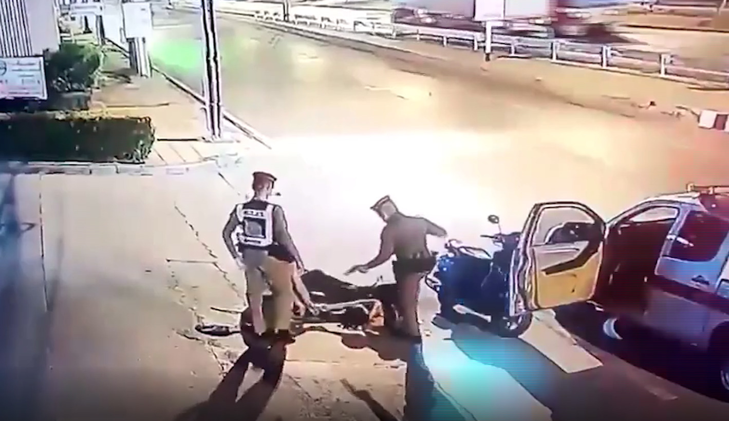 ภาพจากกล้องวงจรปิดที่จับภาพวัยรุ่นชาย 3 คน ขี่รถจักรยานยนต์ย้อนศร มาพบรถสายตรวจ สภ.สามพราน จ.นครปฐม รีบขอความช่วยเหลือ และพยายามอธิบายให้เจ้าหน้าที่ตำรวจฟังว่า ถูกคู่อริไล่แทงมา แต่ถูกตำรวจตรวจค้น โดยสั่งให้ยกมือขึ้นและให้นั่งลงถอดเสื้อ และตรวจค้นเจออาวุธปืนพกสั้น 1 กระบอก โดยมีการกดตัวลงกับพื้นถนน บังคับใส่กุญแจมือ และตำรวจยังใช้เท้าเตะ กระทืบหลัง หลายครั้ง ใช้เข็มขัดฟาด มีการเหยียบหัวซ้ำอีก