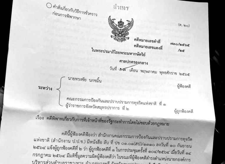 ล่าสุด เมื่อวันที่ 18 พ.ค.ที่ผ่านมา ศาลปกครองกลางมีคำสั่งในคดีหมายเลขดำ ที่ 730/2565 เรื่องคดีพิพาทเกี่ยวกับการที่เจ้าหน้าที่รัฐกระทำการโดยไม่ชอบด้วยกฎหมาย ระหว่างนายทรงชัย นกขมิ้น ผู้ฟ้องคดี กับคณะกรรมการ ป.ป.ช. ผู้ถูกฟ้องคดีที่ 1 และผู้ว่าราชการจังหวัดสมุทรปราการ ผู้ถูกฟ้องคดีที่ 2 ให้ทุเลาการบังคับคดีตามคำสั่งจังหวัดสมุทปราการที่ 1893/2565 ลงวันที่ 8 เม.ย.65 ที่สั่งให้นายทรงชัย พ้นจากตำแหน่งนายก อบต.ราชาเทวะ ไว้เป็นการชั่วคราว จนกว่าศาลจะมีคำพิพากษาหรือคำสั่งเป็นอย่างอื่น