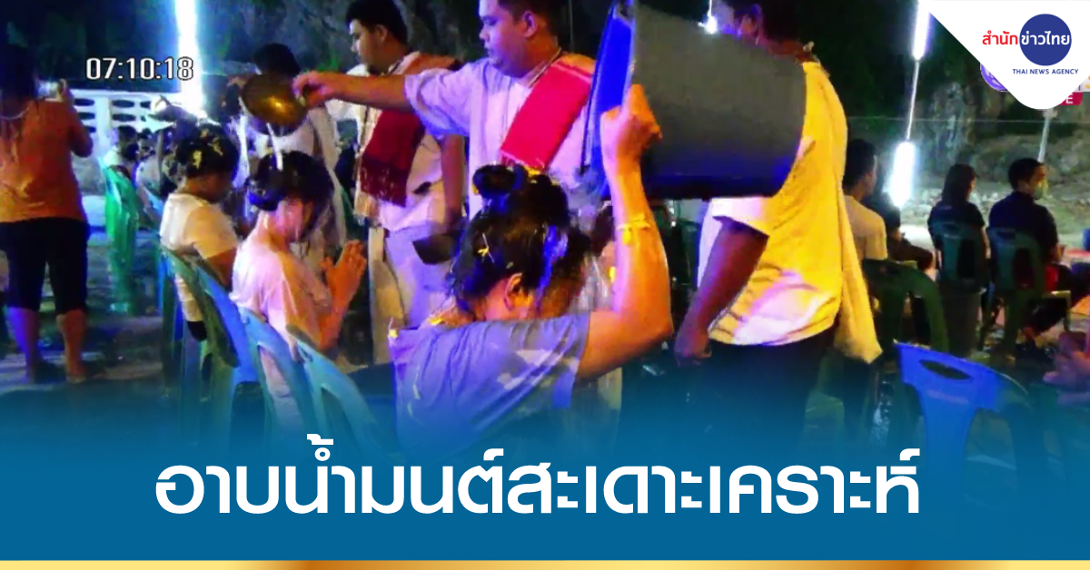 ตรัง 25 พ.ค. – ประชาชนกว่า 100 คน ร่วมพิธีอาบน้ำมนต์สะเดาะเคราะห์แบบโบราณฉบับชาวใต้ ซึ่งจัดขึ้นเป็นครั้งแรก เชื่อจะทำให้ชีวิตครอบครัวและหน้าที่การงานดีขึ้น