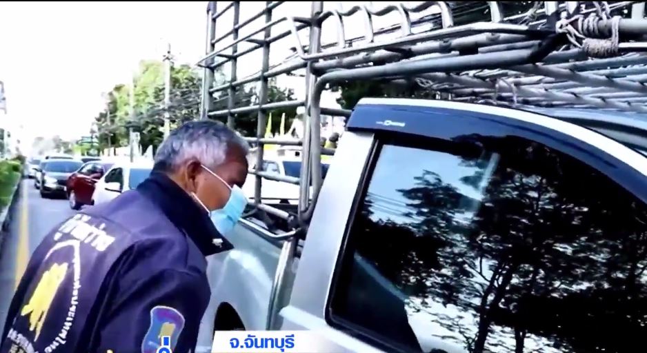 เจ้าหน้าที่กู้ภัยสว่างกตัญญูธรรมสถานจังหวัดจันทบุรี ตรวจสอบรถกระบะบรรทุกผลไม้ จอดนิ่งติดเครื่องยนต์ อยู่กลางถนนเลียบเนิน ตำบลวัดใหม่ อำเภอเมือง จังหวัดจันทบุรี ช่วงสี่แยกไฟแดงสำนักงานที่ดิน ซึ่งเป็นช่วงชั่วโมงเร่งด่วน ไฟเขียวแล้วก็ยังไม่ไป ส่งผลรถติดสะสมยาว