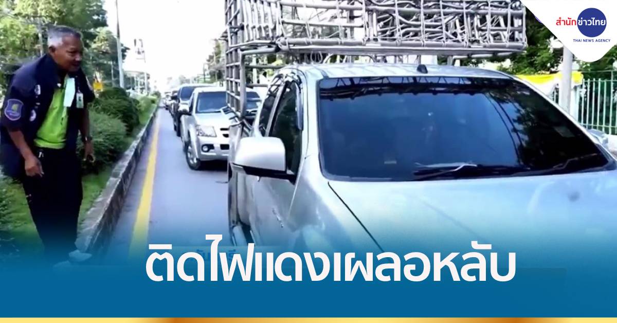 จากการสอบถามทางกู้ภัยคาดว่าคนขับน่าจะอ่อนเพลีย จากการขับรถทางไกล ทำให้เผลองีบหลับขณะจอดติดไฟแดง . – สำนักข่าวไทย