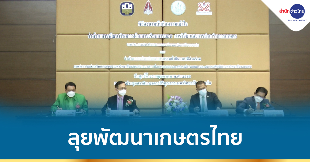 ขอนแก่น 27 พ.ค.- กรมส่งเสริมการเกษตร ผนึกกำลัง มข.-ธ.ก.ส.-สศ.มข. เซ็น MOU สร้างความร่วมมือด้านการเรียนการสอน งานวิจัย และส่งเสริมเกษตรกรรมยั่งยืนแบบมีส่วนร่วม