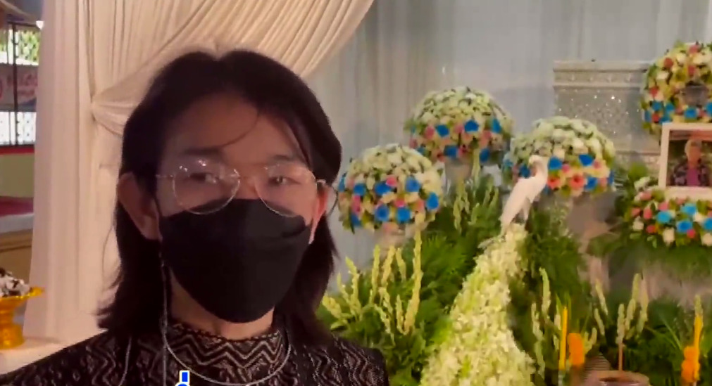 ผู้สื่อสื่อข่าวเดินทางไปยังวัดศาลาอ้อ วัดสิทธาราม พบกับลูกสาวของคุณยาย อายุ 55 ปี เล่าให้ฟังว่า คุณแม่ล้มจนกระดูกสะโพกแตก รักษาตัวอยู่เพียง 3 เดือน แม่ก็เสียชีวิต ก่อนจะเสียชีวิต แม่ได้สั่งเสียไว้ว่าถ้าเป็นอะไรไป อย่าให้ลูกหลานลำบาก ทำพิธีแค่ 3 วัน หลังจากแม่เสียชีวิตลงก็ต้องเก็บร่างคุณแม่เอาไว้ เนื่องจากสถานการณ์โควิด-19 รอจนกระทั่งสถานการณ์โควิด-19 ดีขึ้น จึงทำพิธีทางศาสนาให้แม่ตามคำสั่ง ที่ให้ใช้รถเครนยกร่างคุณแม่พร้อมโลงเย็น เพราะคุณแม่บอกว่าไม่อยากให้ลูกหลานลำบากที่จะต้องยกโลงลงจากบ้าน เพราะโลงเย็นมีน้ำหนักมาก อาจทุกลักทุเล โคลงไปมา สู้ให้แม่เหินฟ้ามาอย่างนี้เลยจะดีกว่า จึงว่าจ้างรถเครนมายกลงจากบ้าน . – สำนักข่าวไทย