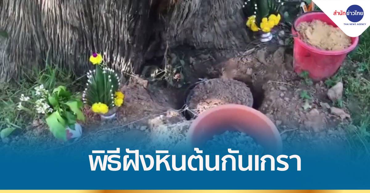 ยโสธร 27 พ.ค. – พระสงฆ์และชาวบ้าน ร่วมกันประกอบพิธีฝังหิน ขุดดินบริเวณโคนต้นกันเกรา หรือต้นมันปลา อายุกว่า 80 ปี เพื่อล้างอาถรรพ์ ตามความเชื่อโบราณ หลังถูกฟ้าผ่าถึง 3 ครั้ง หวั่นช้ำรอยอีกครั้ง