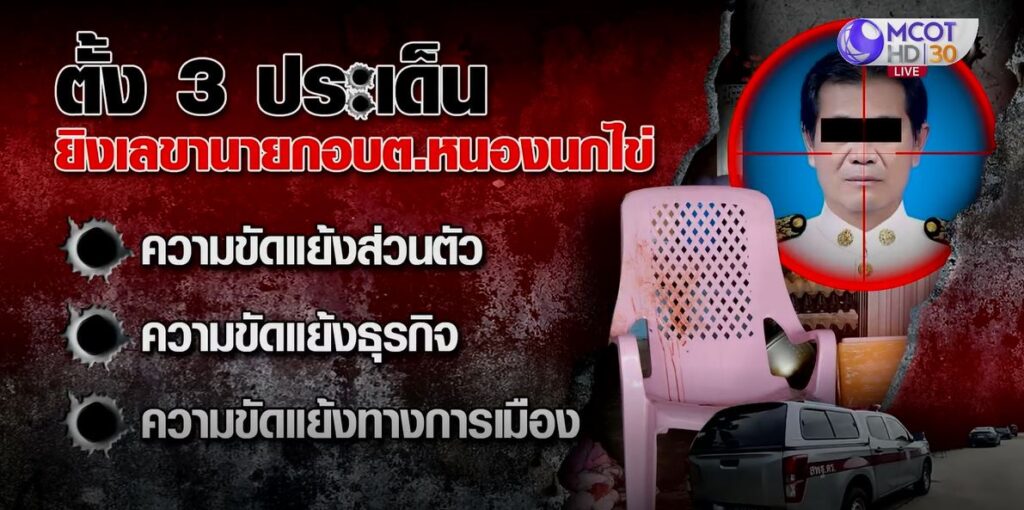 สมุทรสาคร 27 พ.ค. – รอง ผบ.ตร. ลงพื้นที่เร่งรัดคดียิงเลขาฯ นายก อบต.หนองนกไข่ อ.กระทุ่มแบน จ.สมุทรสาคร ตั้งปมสังหาร 3 ประเด็น คือ ปัญหาส่วนตัว ขัดแย้งธุรกิจ และการเมือง
