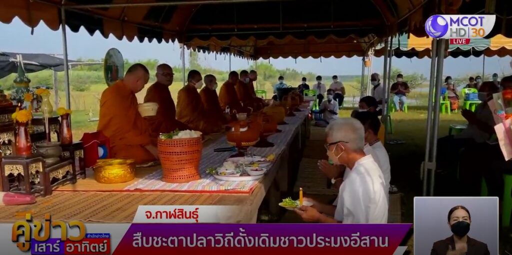 กาฬสินธุ์ 28 พ.ค. – ชาวประมงริมเขื่อนลำปาว บ้านนาสีนวล ต.สหัสขันธ์ อ.สหัสขันธ์ จ.กาฬสินธุ์ จัดพิธีสืบชะตาปลา วิถีดั้งเดิมอีสาน ร่วมทำบุญตักบาตร ถวายภัตตาหารแด่พระภิกษุสงฆ์ อุทิศส่วนกุศลให้กับปลา และร่วมปล่อยปลาในเขื่อน หลังว่างเว้นงดทำพิธีสืบชะตาปลามานานกว่า 2 ปี เพราะสถานการณ์โควิด