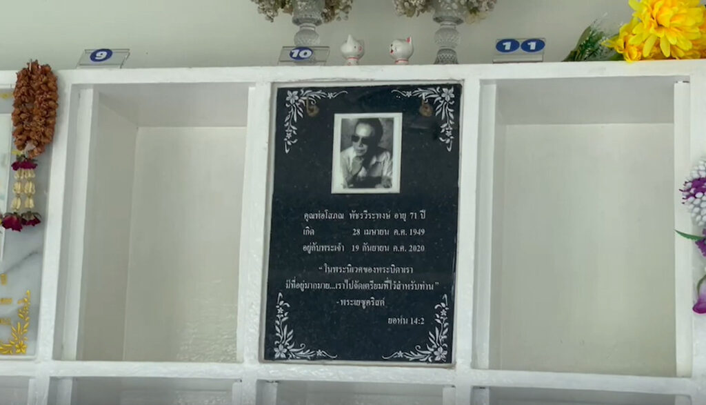 กทม. 28 พ.ค.-ส.ส.เต้ พาคุณแม่ภนิดา เก็บอัฐิแตงโม นำอัฐิส่วนหนึ่งเก็บไว้ที่โซนกัลปังหา ช่องหมายเลข 9 ติดกับคุณพ่อของแตงโม