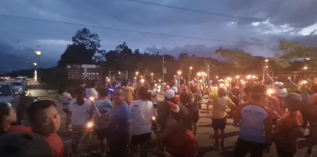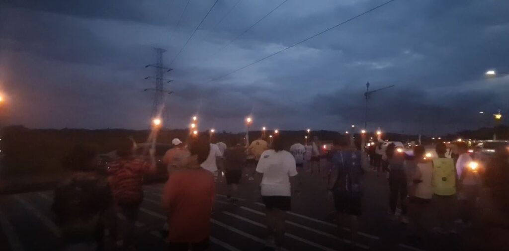 นครศรีธรรมราช 28 พ.ค. – นักวิ่งรวมตัวจุดคบเพลิงวิ่ง เปิดเพลงเต้นบนถนนพุทธภูมิ ประจานไฟประติมากรรมส่องสว่างชำรุดนับปี ร้องไปทุกหน่วยงานไร้การแก้ไข