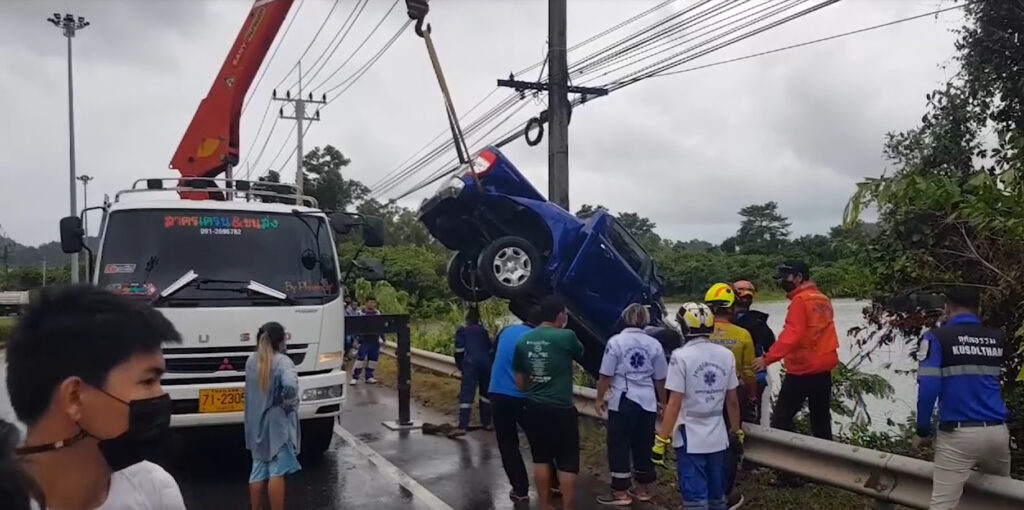 ภูเก็ต 29 พ.ค. – ฝนตกถนนลื่น หญิงวัย 53 ปี ขับรถเสียหลักตกขุมน้ำริมถนนพระภูเก็ตแก้ว เสียชีวิตอยู่ภายในรถ เจ้าหน้าที่ใช้รถเครนยกขึ้นมาจากน้ำ ลูกชายและลูกสาวมาเฝ้าดูด้วยความโศกเศร้า
