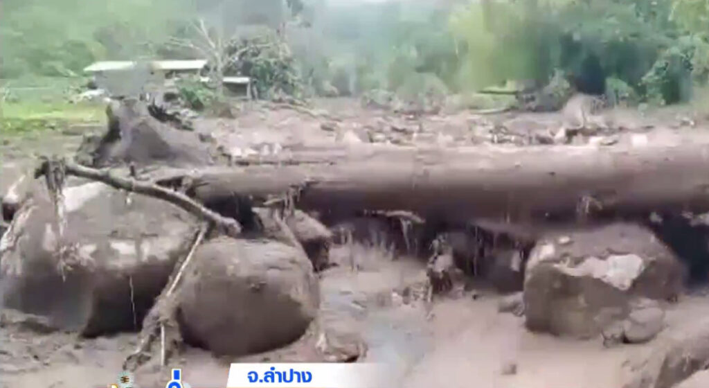 ลำปาง 31 พ.ค. – ฝนหนักติดต่อกัน น้ำป่าทะลักหลายพื้นที่บนดอยลังกา จ.ลำปาง น้ำป่าไหลทะลัก ลงจากยอดดอย พัดพาต้นไม้ขนาดใหญ่หักโค่นไหลลงมากับน้ำ ซัดถนน สะพานขาด ชาวบ้าน เดือดร้อนหนัก บางหมู่บ้านรถยนต์ไม่สามารถสัญจรผ่านได้ ต้องเดินเท้าออกมาไกลกว่า 12 กิโลเมตร