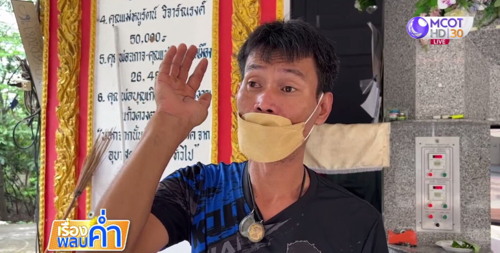 ทีมข่าวลงพื้นที่ไปพบนายพีรพงษ์ วันยา อายุ 45 ปี ซึ่งเป็นสัปเหร่ออยู่ภายในวัด บอกว่าภาพที่ลงทางโซเชียลเป็นเรื่องจริง ตนเองอาศัยหลับนอนอยู่ในเมรุเผาศพ และข้างๆ เตียงนอนก็มีเตาไฟฟ้าที่ใช้ในพิธีเผาศพ ก่อนหน้านี้ตกงาน มีญาติที่เป็นสัปเหร่อที่วัดนี้ชวนมาทำงานด้วย จึงตัดสินใจทันที นอนอยู่ที่นี่มาประมาณ 4 ปีแล้ว ไม่ได้รู้สึกกลัว เพราะตอนกลางคืนก็ต้องดูความเรียบร้อยภายในวัดด้วย